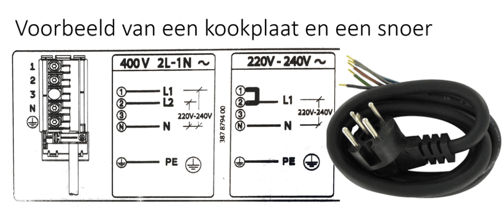 Nu we de juiste aansluiting hebben gemaakt is het van belang dat het kooktoestel zelf ook juist wordt aangesloten. Veel fabrikanten leveren kooktoestellen zonder snoer en/of stekker zodat ze ook niet aansprakelijk kunnen zijn van een verkeerde (fatale) aansluiting op het lichtnet.