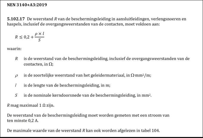 Volgens de NEN 3140 versie 2018 staat dat de grenswaarde RPE niet boven de 0.55 ohm (dus maximaal 50 meter, 2,5 mm2 volgens tabel) mag zijn… Nu hebben wij te maken met evenementen waarbij we verlengkabels van 75 meter en 100 meter aan één stuk nodig zijn. Als we ons vast moeten houden aan deze NEN 3140 dan is deze lengte per definitie afkeur, maar dan starten hier de eindeloze discussie “met 4 x 25 meter. Kabels ben ik er ook” of dan neem ik 4 mm2 of 6 mm2 bekabeling met een blauwe CEE stekker. De belasting is ook niet volledig. Meestal gaat het over een geluidstafel en wat randapparatuur in het midden van het terrein.