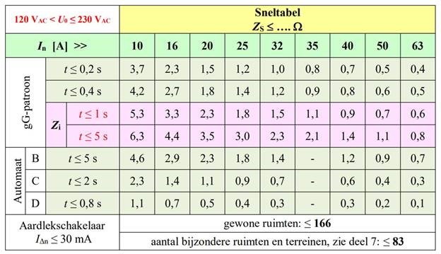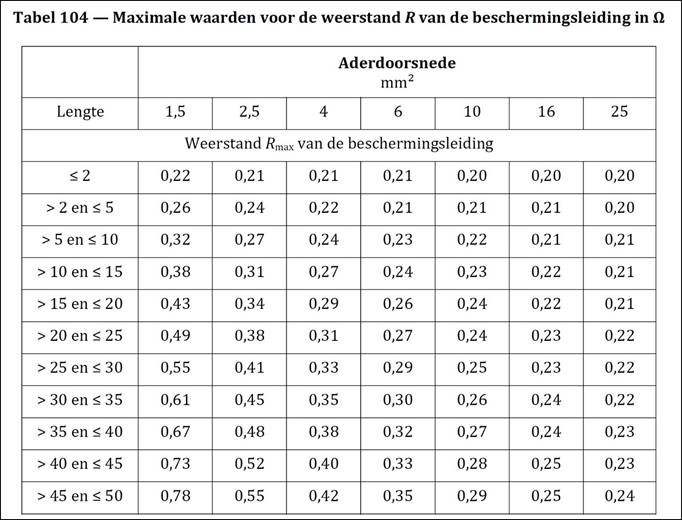 Tabel 104 is een handige tool, maar er staat ook dat de weerstand R maximaal 1 Ω mag zijn.