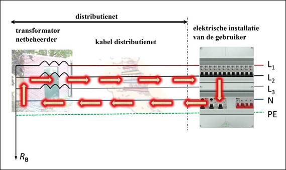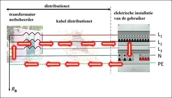 Nu hebben we te maken met de som van de weerstanden. Achter de laatste zwerfkast of de laatste kabelhaspel moet het ook veilig zijn.