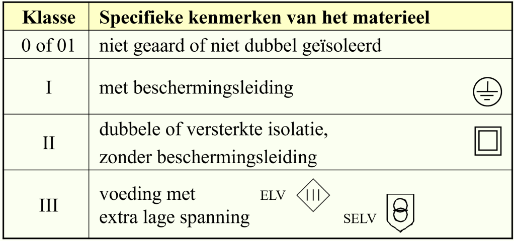 – de contactdoos is geaard, dus klasse I.